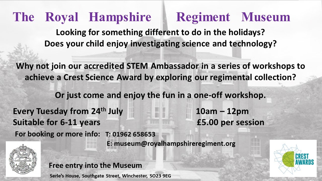 The  school holidays are nearly upon us. We are pleased to tell you that we have an experienced STEM (science, technology, engineering & maths) Ambassador working with us to provide a series of fun workshops for children aged 6-11 years.  Better still, if they attend four workshops, they will be awarded a CREST Science Award. Who said you can’t have fun whilst learning?